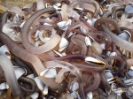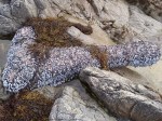 After a deep breath after all this excitement I collected a few more hermits and prawns and packed up the absolutely untouched traps. Couldnt be disappointed at this stage. Was worth a try and will try again with different bait maybe. Back in the car I went up the Coral Beach to collect some water as its always very clear here and I was in for another surprise. Looking from the carpark I could see something very large 2m long, weird color pattern but looked too odd to be natural but couldnt make out what it could be so I went closer to investigate. Then my jaw dropped… It was a huge colony of goose barnacles (again I only know the name from AnBollenessor’s post). Probably thousands, washed up on shore attached to a big piece of wood. I havent seen anything as weird looking. Truly fascinating. They where still alive and moving their tentacles. I called the Aquarium in Galway to see if they where interested in taking it. Β Not sure if they would thrive in an aquarium? It would look deadly! They got me in contact with Anne Marie Power from NUIG that is a specialist in goose barnacles and researching their unique glue that tacks to anything underwater (See their Facebook pageΒ and UniPage). She was amazed to hear about it and we met the next day at the beach. They cut up some big pieces of the wooden structure for their research and I also took some small pieces that I am going to trial in my aquarium. They have successfully kept goose barnacles in the past for over a year in an aquarium so hopes are high. It was a fantastic experience from finding and investigating it to talking to a specialist and now finally having a tiny piece of it in my aquarium! Thanks Anne Marie for all the interesting info I got from you! Check out some of the pictures of the trip here…