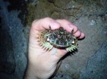 Heard to many stories about their demonic voraciousness so I wasnt tempted in bringing it home. But it would look deadly! After a few more goes of leaving the net down for a few minutes and pulling up came another surprise. A fifteen spined stickleback. Really interestingly designed fish with a nice golden brown colour and his mouth is quite small so he is coming for a trial in the aquarium. I think they feed on small shrimp. If he isnt happy or doesnt feed he will be released again.