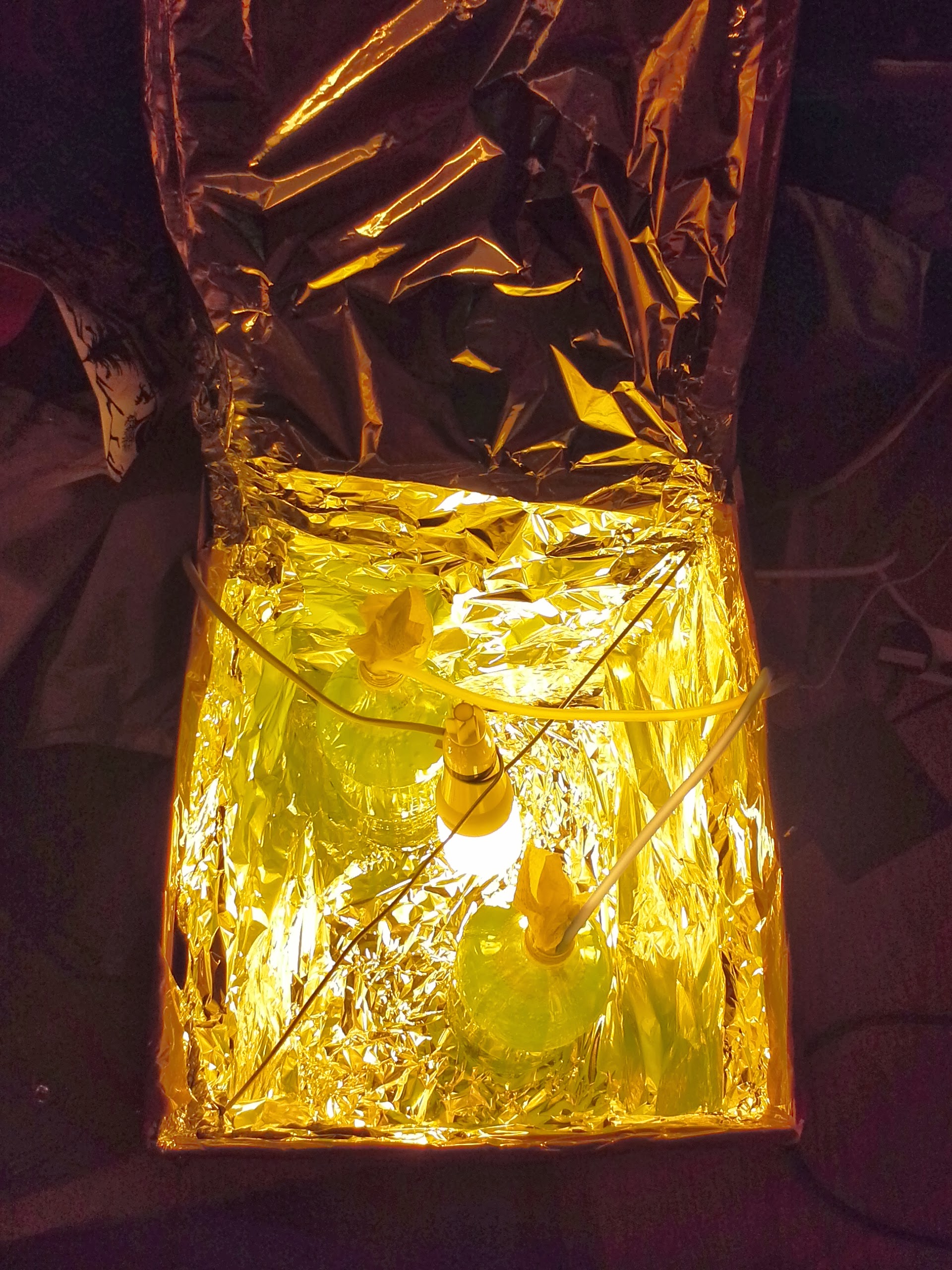 In a nutshell what I did then is lined a cardboard box and lid with tinfoil, cleaned two 2l bottles, filled with seawater (from tank), added little bit of Phyto (bought in store) so that the water has just a bit of a green shimmer, added 5ml of Miracle Grow to each bottle, dropped airstone into them, “sealed” top with a bit of kitchen towel, put the bottles in my “reaktor” (tinfoil lined box), switched Lights on a 16hON/8hOFF cycle.