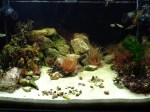 The Tank has gone very clear now with the addition of some filterfoam pads between the baffleplates of the sump and 24h skimming.