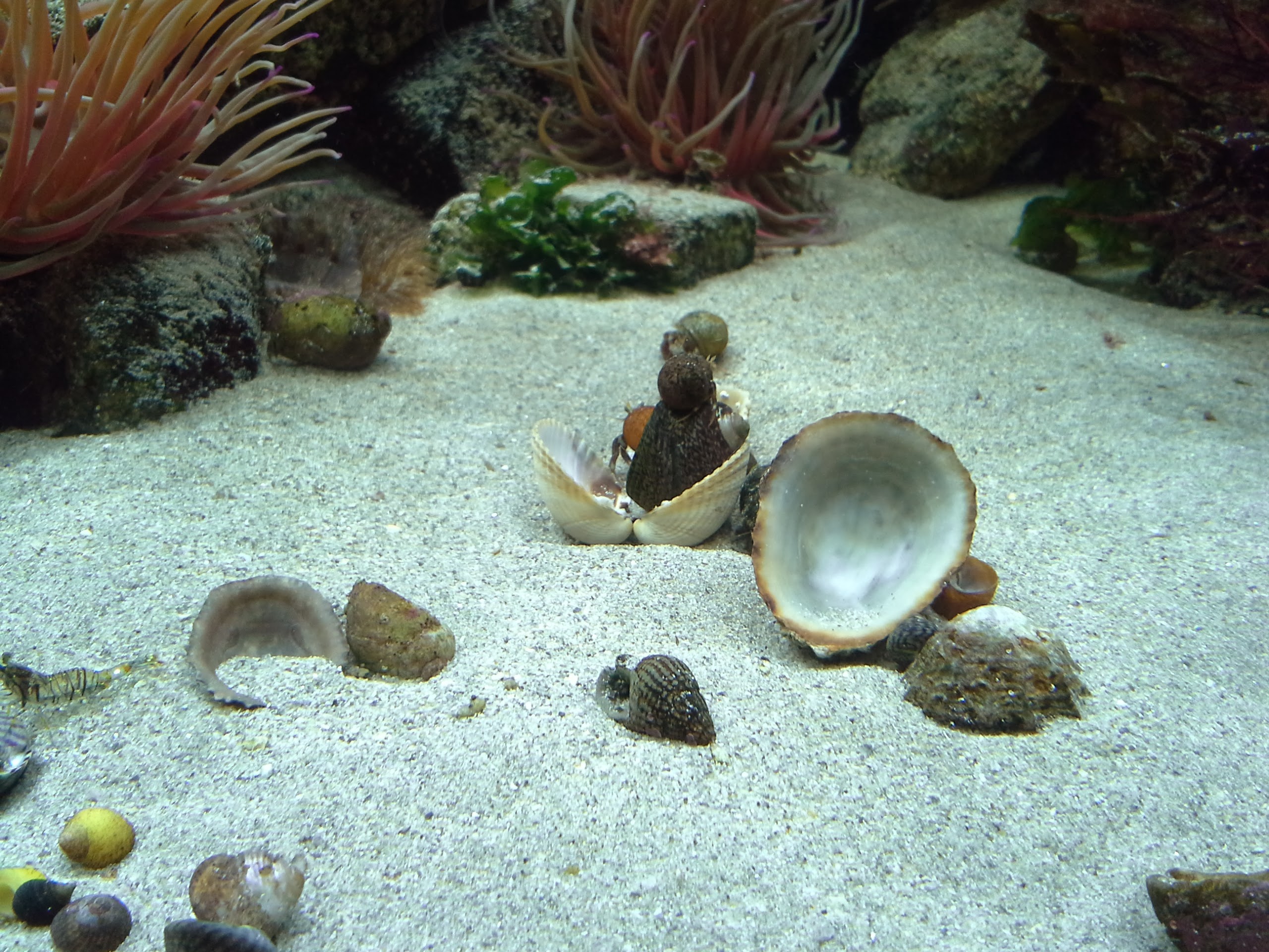 The cockle has either died (which I doubt) or has been preyed upon by the recently reappearing common starfish (5cm). This guy wasnt seen since introduction a few weeks ago and has disappeared again now.