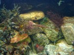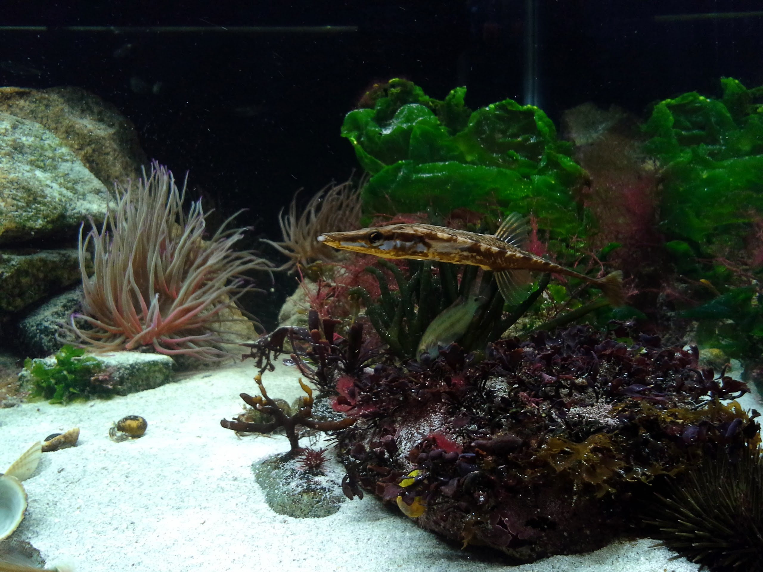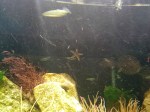 The Corkwing Wrasse is great to watch when cruising through the weeds and rocks always scanning and probing everything for food. He looks well fed even though he doesnt accept the flakes and pellets but likes the cooked mussels. Can you see him in the weeds?