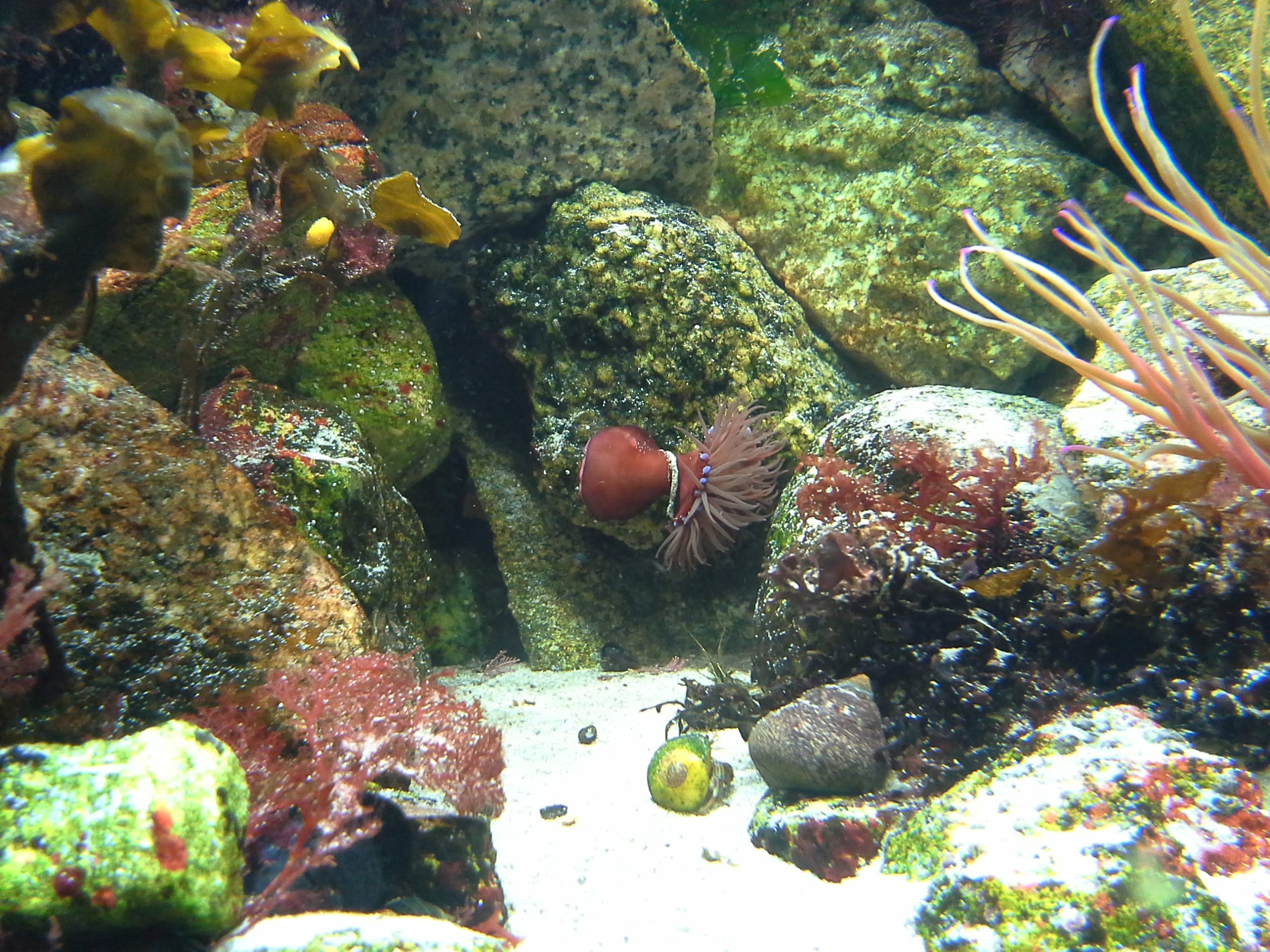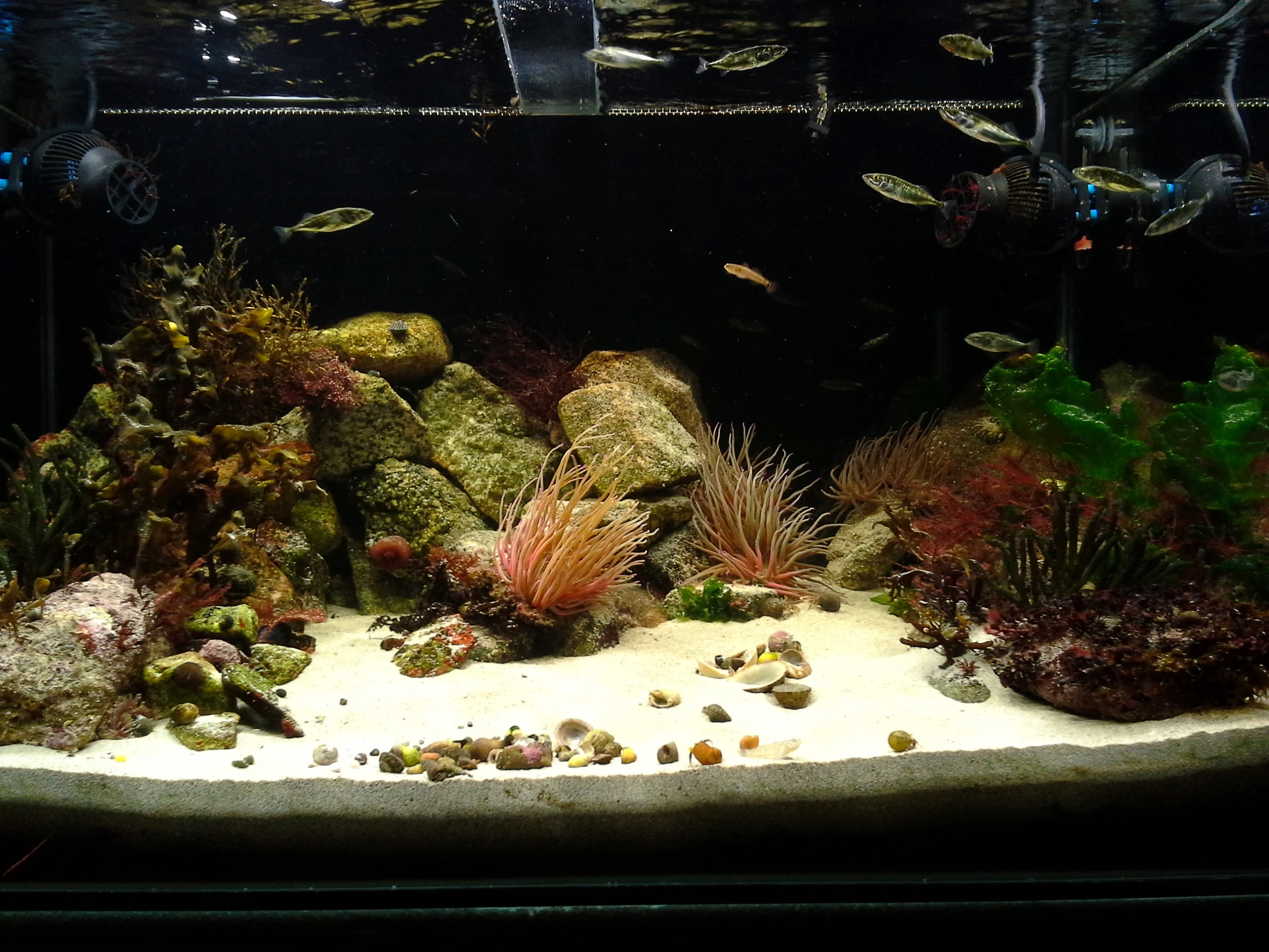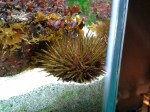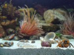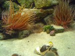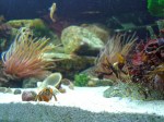 This beadlet Anemone that was one of the first inhabitants has never moved but is very regulary making sure no one else comes too close by probing in all directions with their blue abrasive warts. Looks quite weird. This link to the fantastic series of “BBC – The Secret Life of Rockpools” shows their fairly aggressive battle moves between individuals. Its quite stunning the amount of different shapes these animals can form themselves into when you can observe them daily.