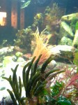 The fifteen-spined Stickleback is still a bit a question mark on whether I can hold on to him as he doesnt eat anything but live tiny prawns or mysis shrimp. He is more settled than a few weeks ago and doesnt look unhealthy (fins in good shape). He is not fat though but I added lots of tiny prawns to the tank now which he is casing after during the night. Such a stunning fish. I wonder though how these creatures survive in the wild. He is so slow (or maybe just not as hungry as I think) and I have to be very careful when dropping a few tiny prawns (that I caught and keep in the sump for him) because the three-spined sticklebacks are extremely fast. I keep a close eye on his condition. What is also very weird for a fish is his behavior when I have my hands in the aquarium. He immediately comes to my hand and touches or almost strokes it with his flank like a cat?? Its quite difficult to clean the glass as he is always in the way 😉 When I curl up my hand he sometimes kind of rests in it and I could nearly lift him out the water, he is so not bothered and not afraid. Very weird and interesting I find.