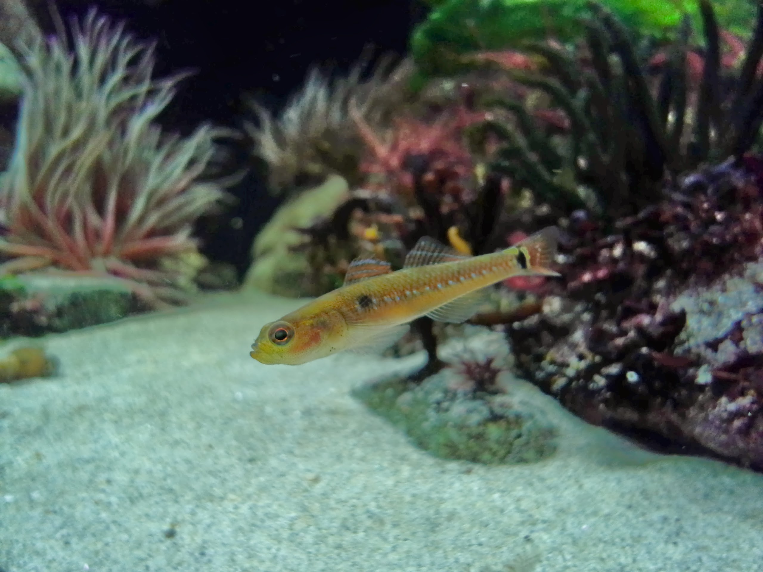 I am very proud of this shot of the two-spotted goby. Think I have about 50 shots of him all blurry and this is the first proper shot that shows how beautiful these animals are. He is actually a bit darker orangy than on the picture. When they go broody the blue will get even more pronounced, hope to find a mate for him…