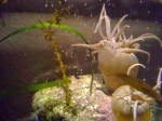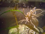 And interesting event happened in my small 20l Plastic tank from the temporary setup. Currently I only use it to hold some fragile pieces of seaweed with various hydroids and bryozoans that I collected after the storms. Also some animals like the two grey snakelocks that I will release shortly. There are about 20 mussels and two hermits and a few periwinkles in there. One evening I saw from far that the snakelocks where all bulbous as if they where feeding, but on what? So I had a closer look and they where feeding indeed.