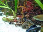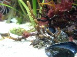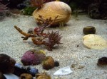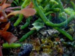 Recently I found a piece of seaweed with two very small nice greenish snakelocks that I brought home. I thought once they move off the little branch I discard it but only when I put it in the tank and had a closer look I realized this could be one of my favorite seaweeds, the so far elusive Bushy Rainbow Wrack. It started to grow new shoots and I am now hopeing it isnt just the normal Rainbow Wrack that I have already. This seaweed was one of the triggers for me to start this project in the first place after reading this.