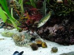 A few animals had to go after annoying me too much 😉 The bigger cushion star was caught feeding on the most beautiful snail I ever found the painted topshell. That was his ticket back to the wild together with the two grey snakelocks and the very “destructive” bigger of the Seaurchins that was constantly trying to mess up my seaweed plantations, heading off with the thermometer and also causing a rockslide! Its amazing how strong they are pushing through crevices. Thankfully nobody was hurt during the slide and it gave opportunity to make a closeup shot of the strawberry anemone.
