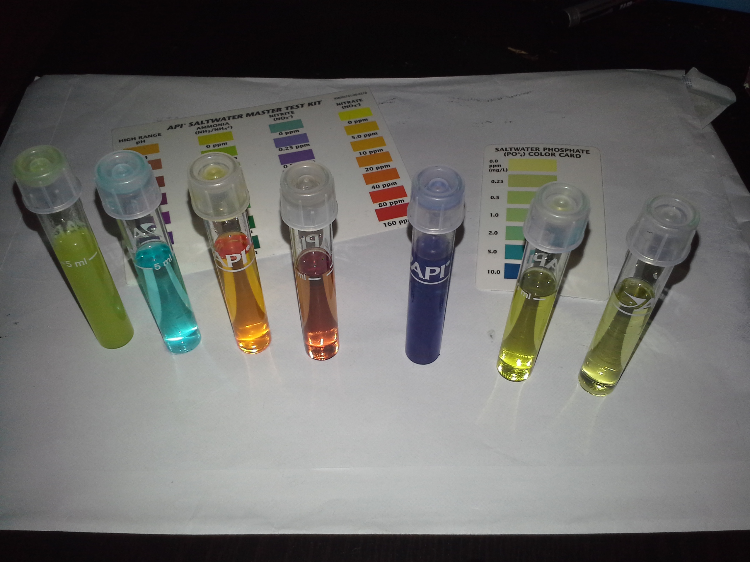 Thought it was time to upgrade the water testing so I ordered another API marine test kit that can do Calcium, KH and Phosphates.