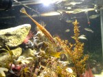The fifteenspined Stickleback has deceased 😦 Not sure why, he was doing fine now for over 4 months and I net fed him daily with either tiny live prawns or unthawed mysis shrimp. However he was getting slimmer and I would have given him another two days before I would have returned him. Unfortunately I shouldnt have hesitated so long. I think he would have needed tons of live mysis shrimp to do really well, my mysis breeding attempts werent fast enough. Here a few old and new pictures for his tribute.
