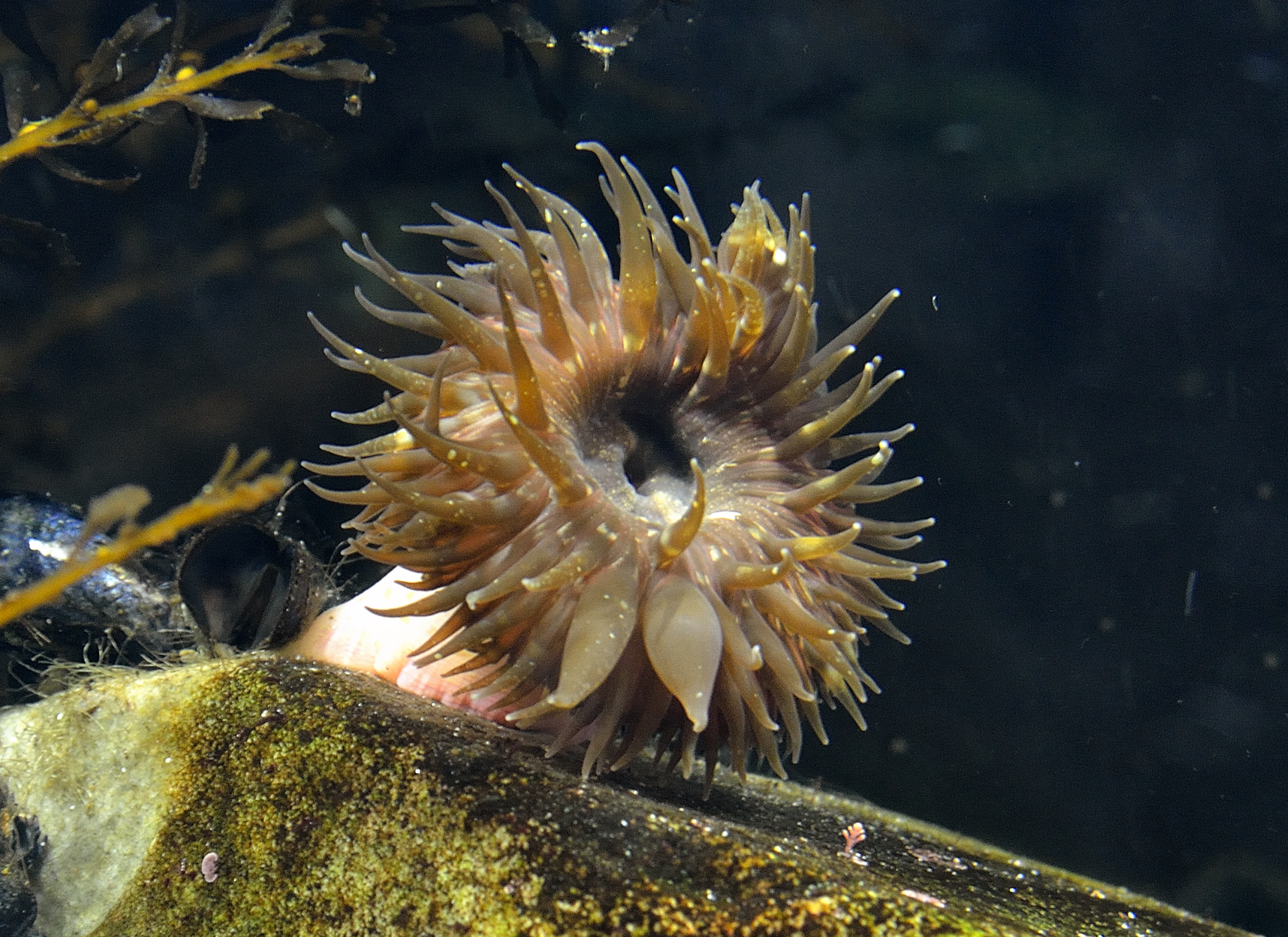 Horseman Anemone Urticina eques. This one is all the way back in the AQ and I was still able to make such a “close up” shot with the kit lens which I didnt expect 🙂 See the nice little shoot of coral weed on the rock? Amazing detail at 50cm distance.