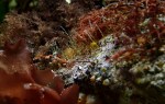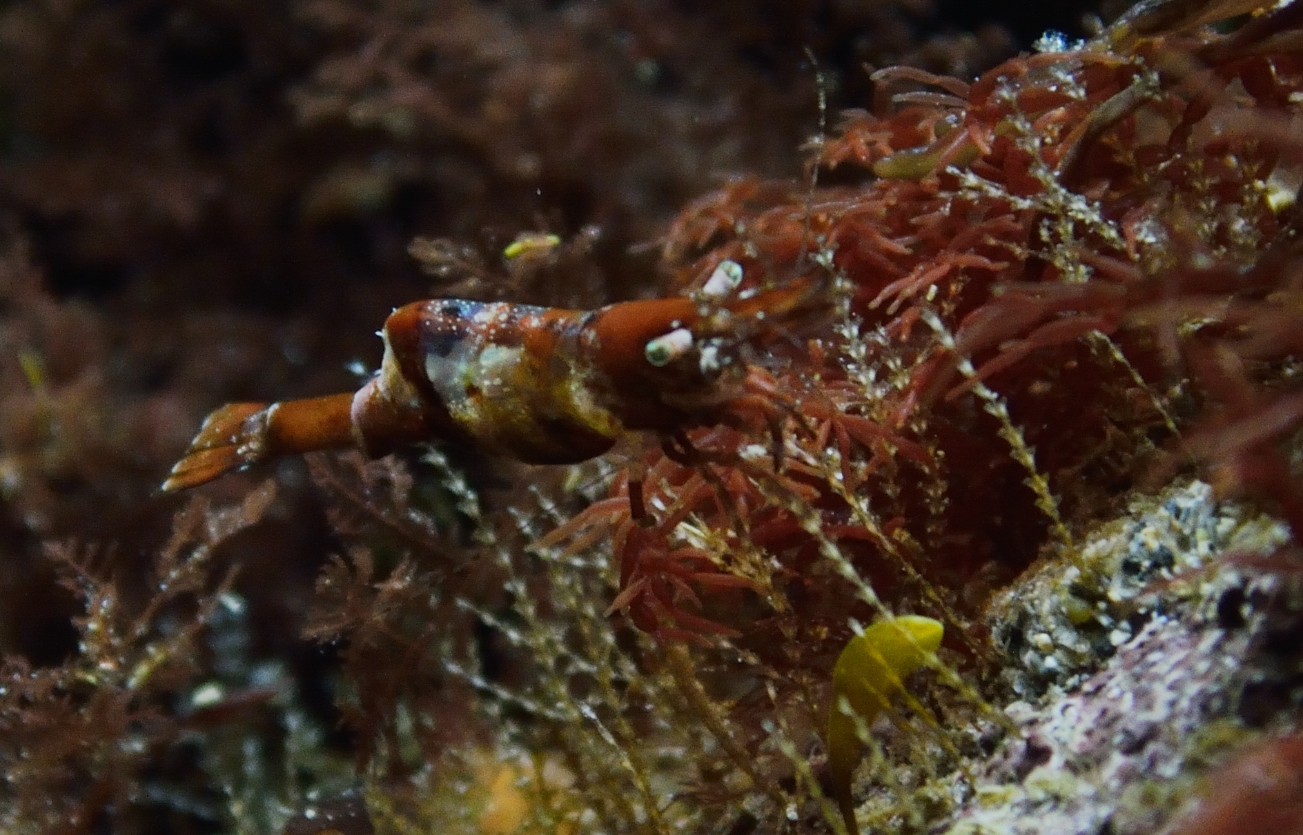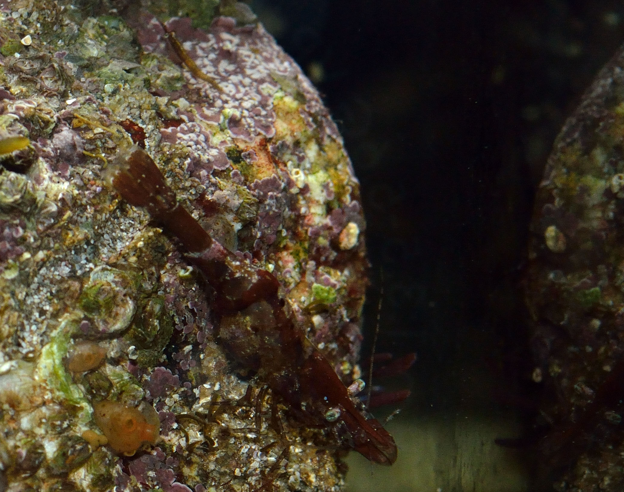 Mysis Shrimp and Chameleon Prawns Hippolyte varians are housing in the LHS where I try to breed them and also hold some small and fragile animals like the four tiny hermits that are probably Anapagurus hyndmanni (Thanks to the Seasearch facebook group for help in ID). This guy below is only 2.5mm tall (without shell). I previously had those animals in a small 30l plastic tank but it was impossible to keep good watervalues so this new setup will surely improve things.