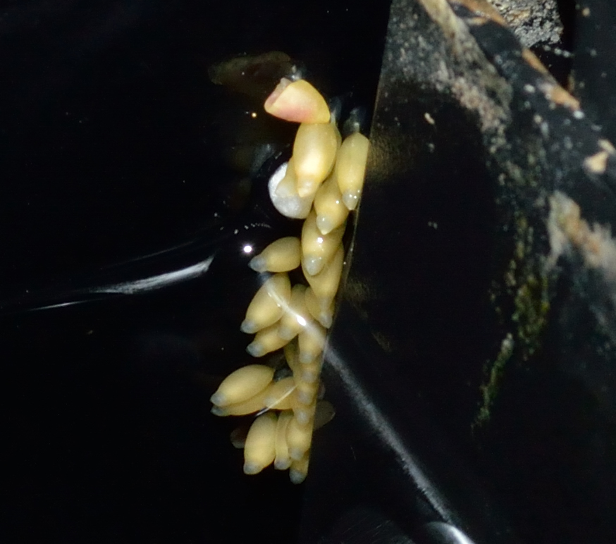 They are amazing creatures as they adapt to their environment in color and pattern which can be quite extreme. In complete darkness they go into a light blue which I have yet only seen when I collect them. The 30min journey in the boot of the car seems to be enough however I havent seen this blue coloration in the tank yet. This one below has quite an extreme coloration and blends in nicely. The yellow eggs can also be seen quite well.