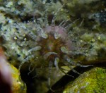 One day I spotted a baby of what I believe is a Daisy Anemone. The darkbrown one in the left of the picture is the “Mother”.