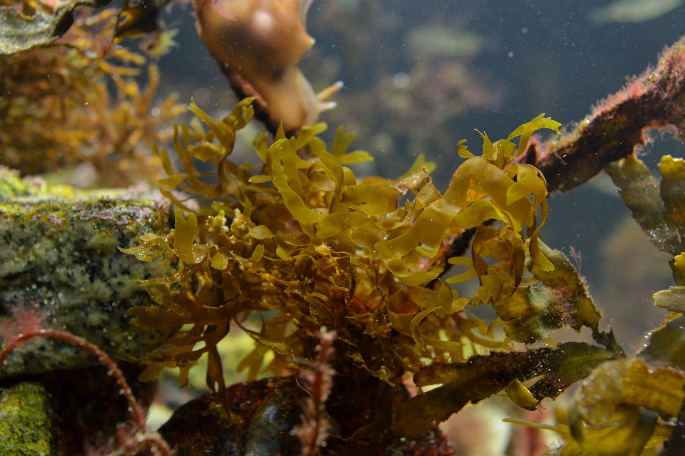 The Seaweed front is not looking great at the moment. Rainbow wrack growing but older parts being completely overgrown with hairalgea. Fucus species growing well but being so heavily perforated by snails that I stopped adding it. Only one that more or less last and stays nice looking is I think Brown Fan Weed Dictyota dichotoma. Ulva also growing and being eaten at rapid pace by prawns and snails.
